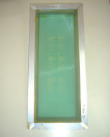 絹(シルク)・ナイロン・テトロンなどの繊維を材料としたメッシュ生地(スクリーン)を版枠に張り、画線部(デザイン部分)のみ孔をあけて版を作ります。