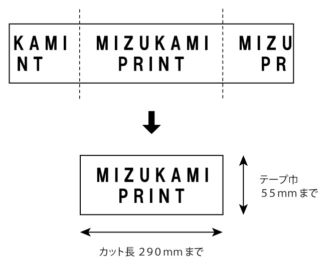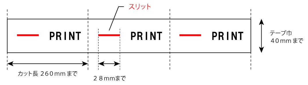 ・テープの巾とカット長の上限はイラストの通り