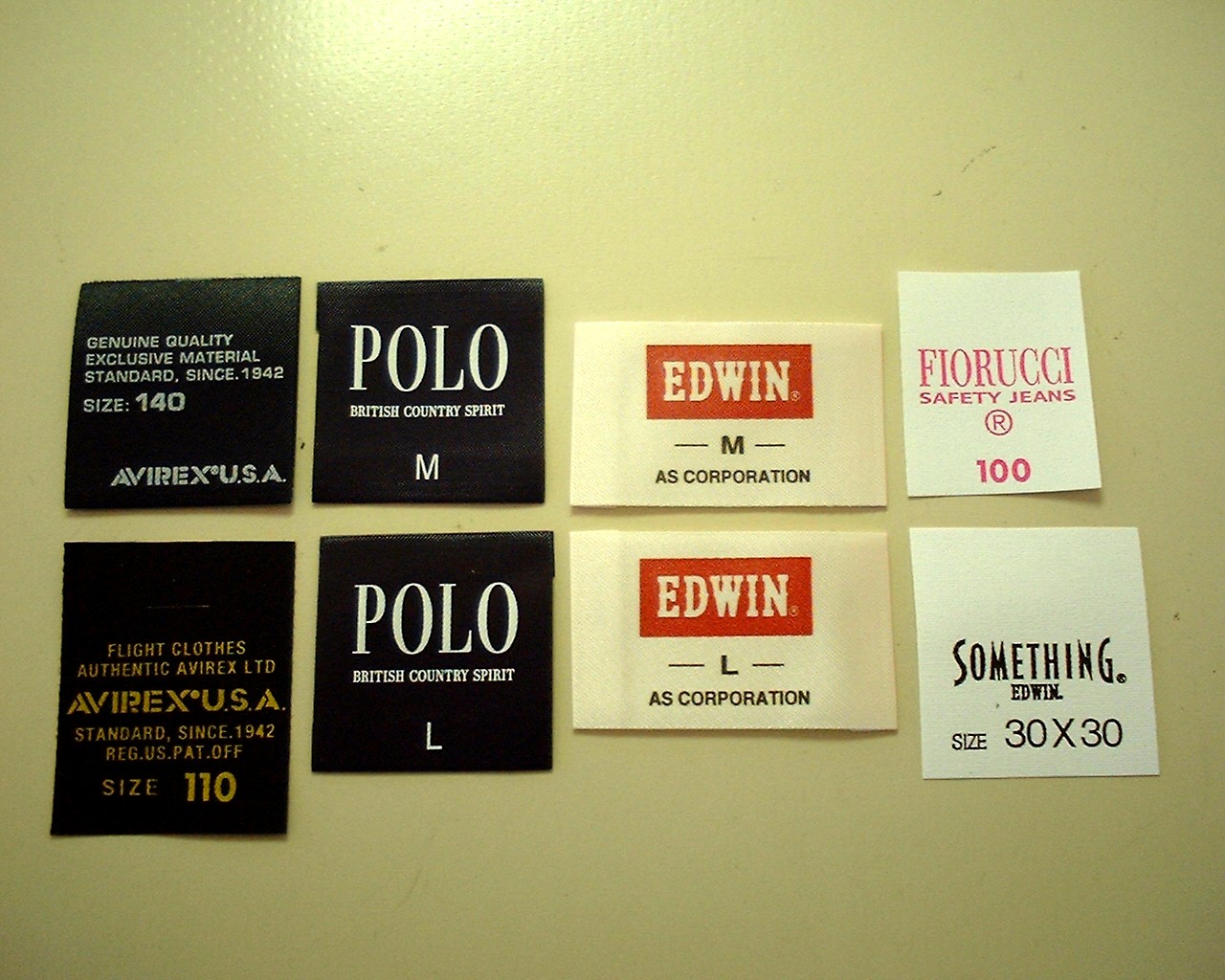 サイズとブランドを一緒に印刷するパターンと、サイズだけを印刷するパターンがあります。前者の方が種類や量が多いです。 |